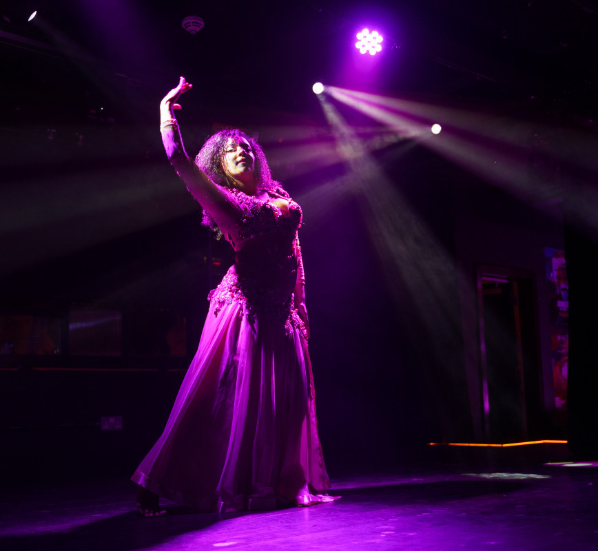 Her versatility shines through a wide repertoire that includes drum solos, veil and sword techniques, and interactive performances — all underpinned by strong musicality, charisma, and respect for tradition.